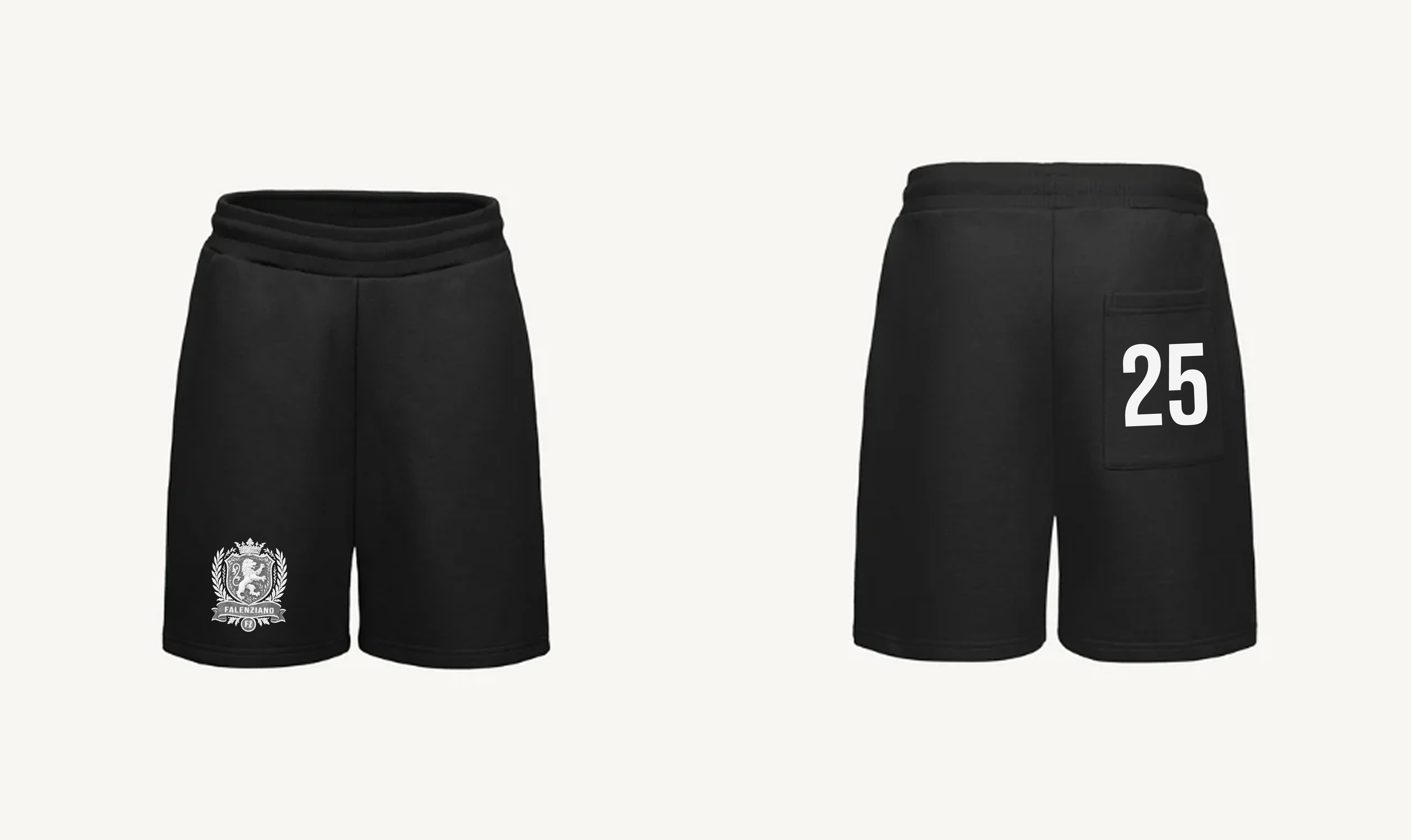 The Falenziano Crest Shorts combine ease with authority. Cut from heavyweight French terry in a relaxed silhouette, they balance comfort with structure. The front is stamped with the Falenziano lion crest a symbol of strength and heritage while the back pocket carries the number 25, a mark of legacy and continuation.
